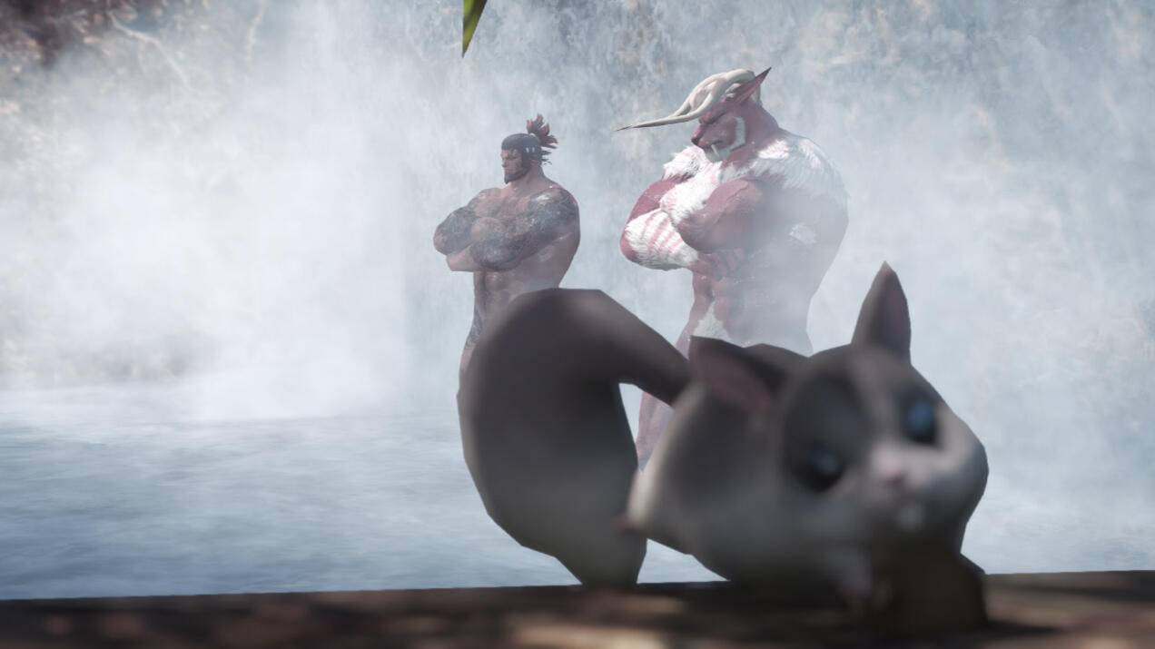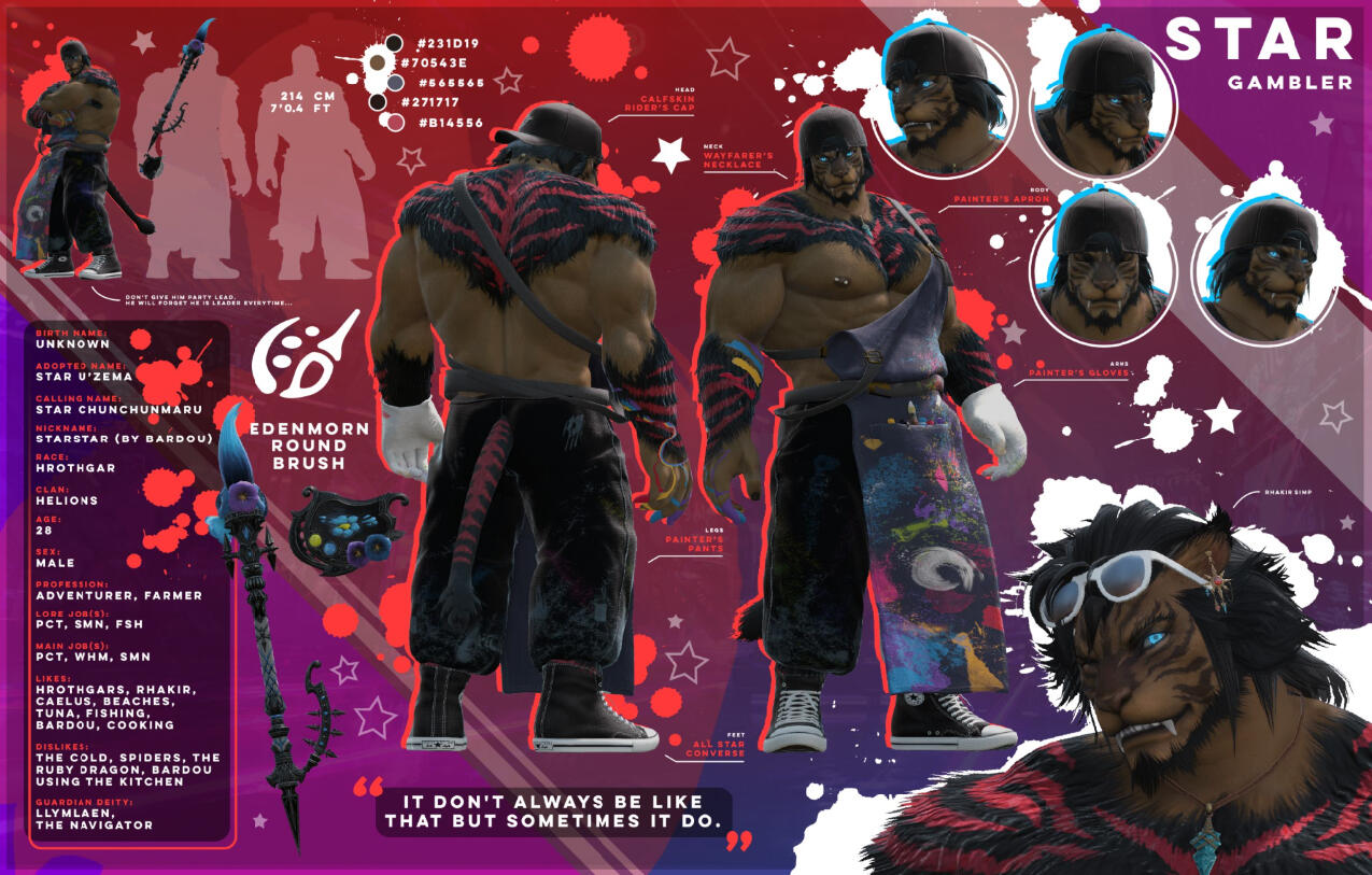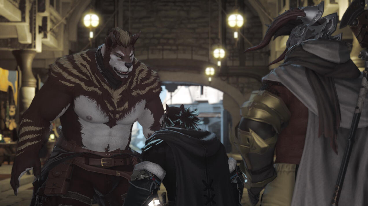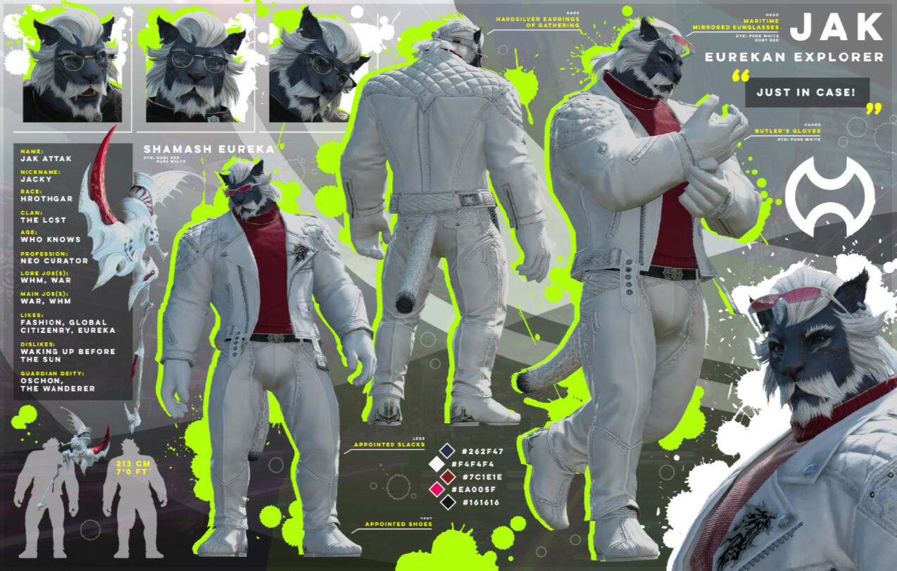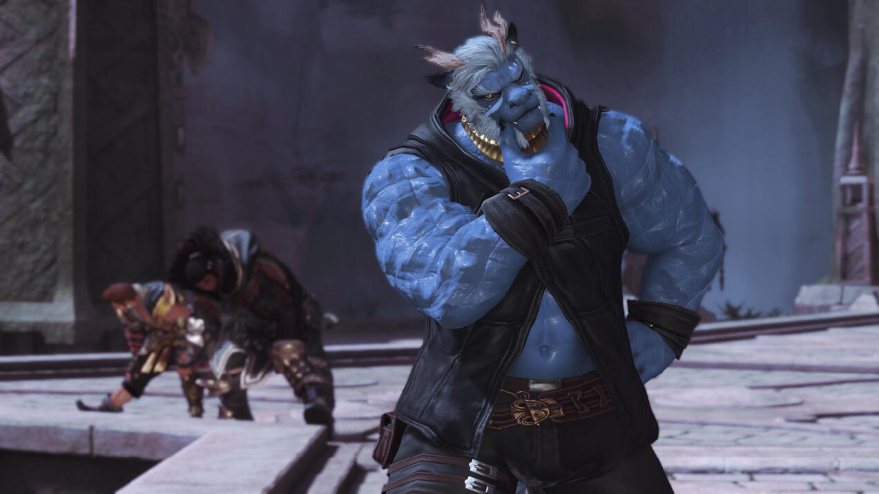Rogahr, a traveling adventurer who loves fighting and action. He met a younger Ga'oh during his pugilist days and is still friends with him till this day. One time he met a bunch of furred fellows and one of them eventually became his partner in life! Recently Rog met a very old hrothgar with behemoth heritage and decided to challenge him, but he lost. Now that behemoth, Malgamoth, became his new master to teach him the old and forgotten techniques of a New World warrior.