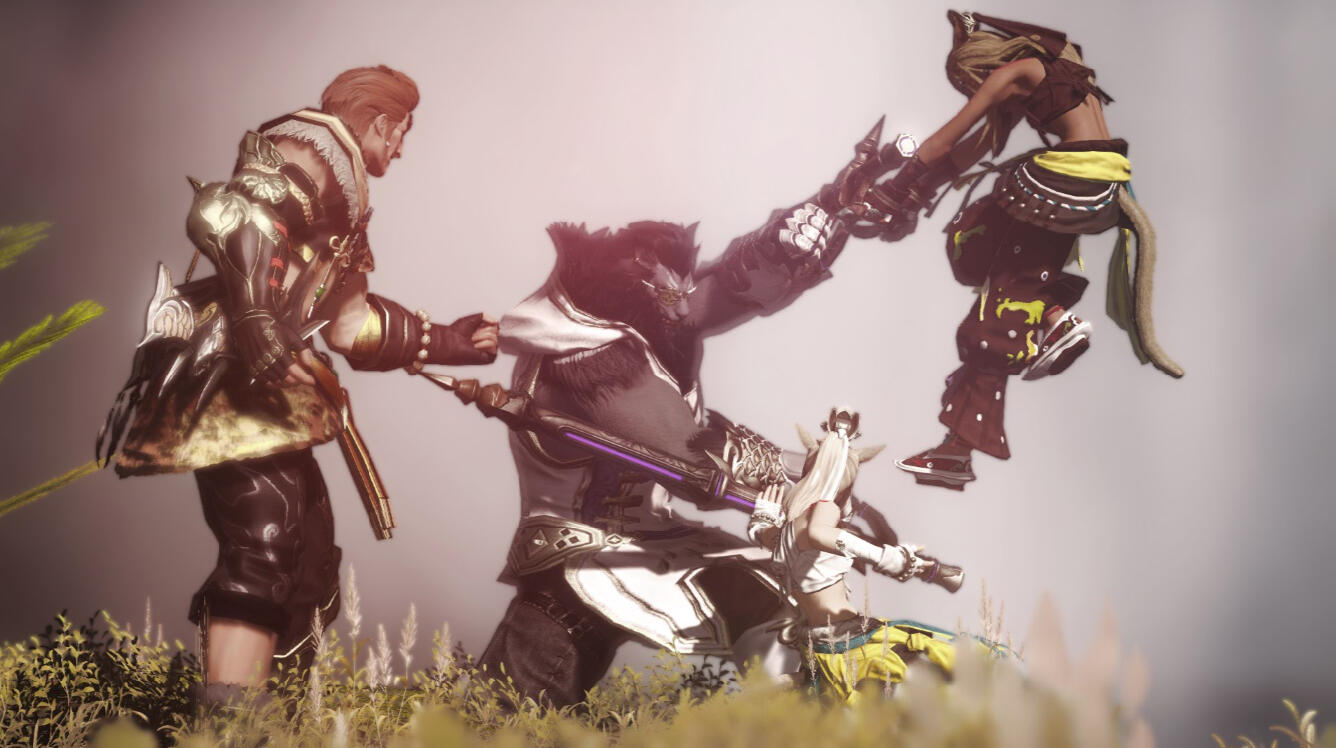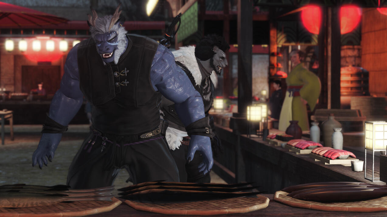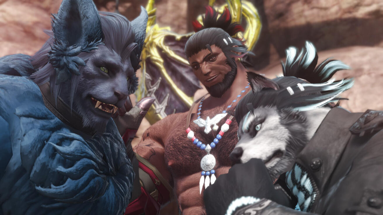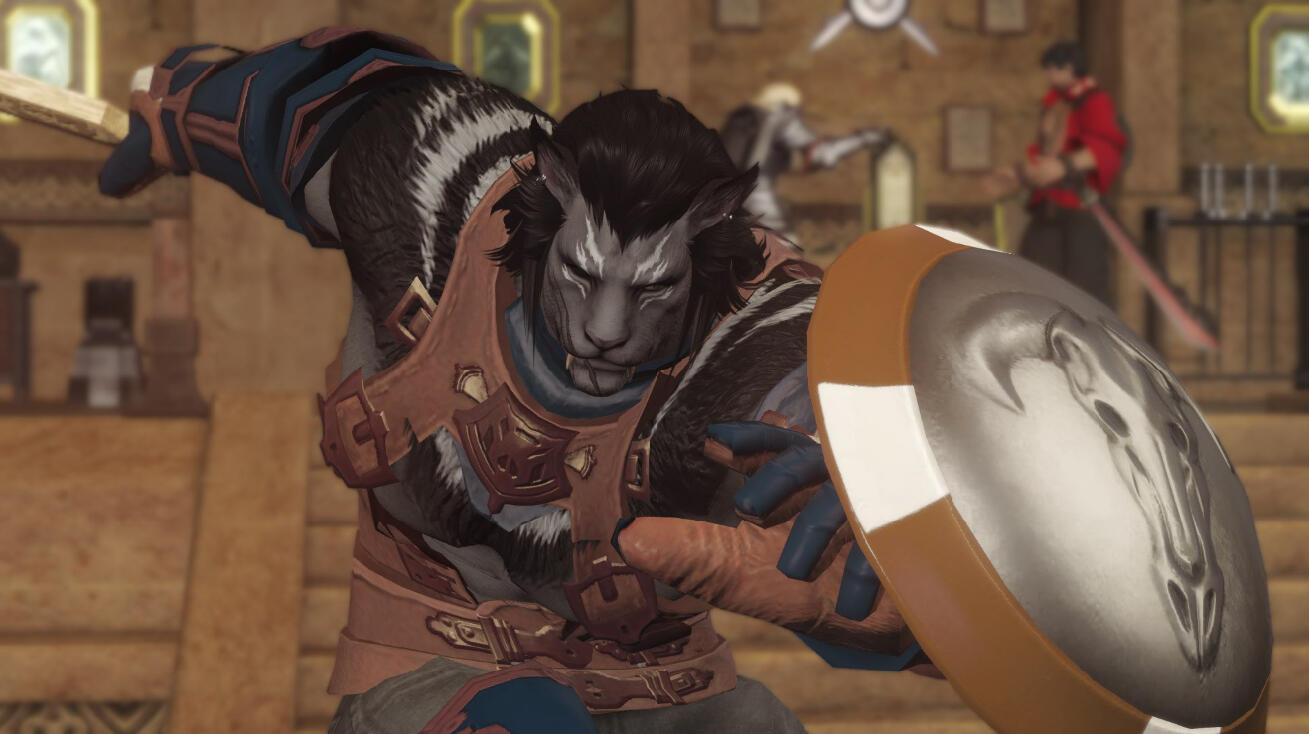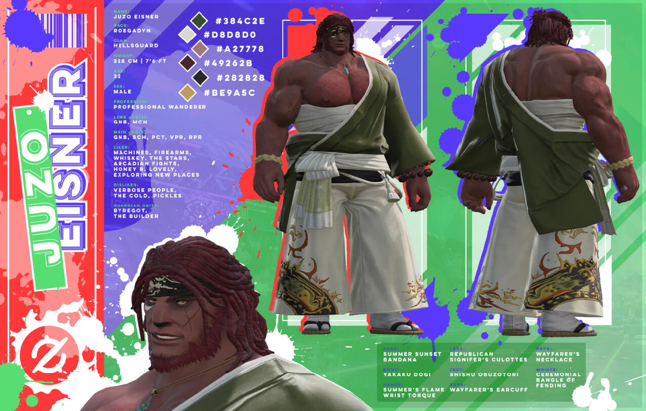 Rogahr, a traveling adventurer who loves fighting and action. He met a younger Ga'oh during his pugilist days and is still friends with him till this day. One time he met a bunch of furred fellows and one of them eventually became his partner in life! Recently Rog met a very old hrothgar with behemoth heritage and decided to challenge him, but he lost. Now that behemoth, Malgamoth, became his new master to teach him the old and forgotten techniques of a New World warrior.