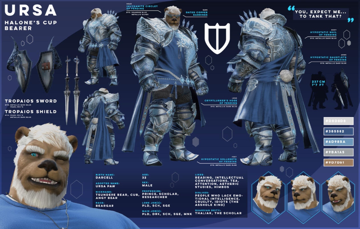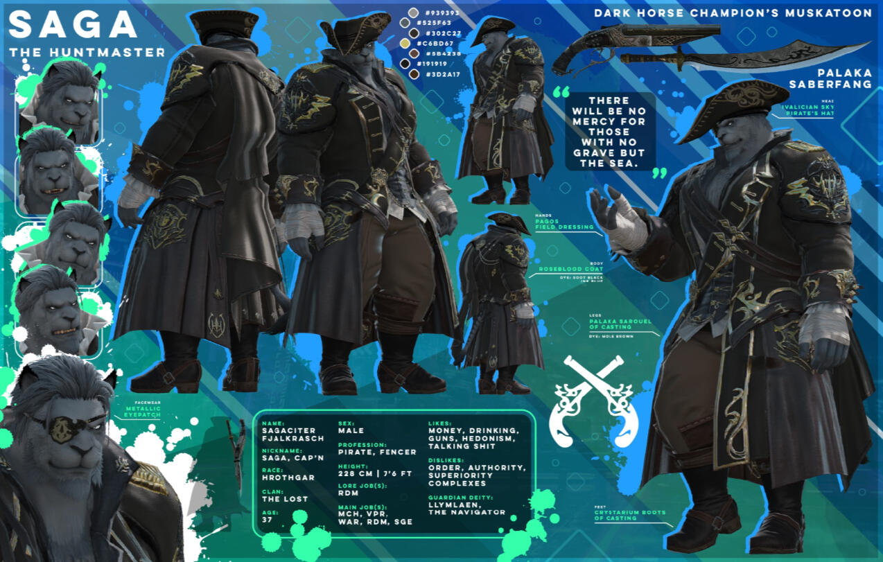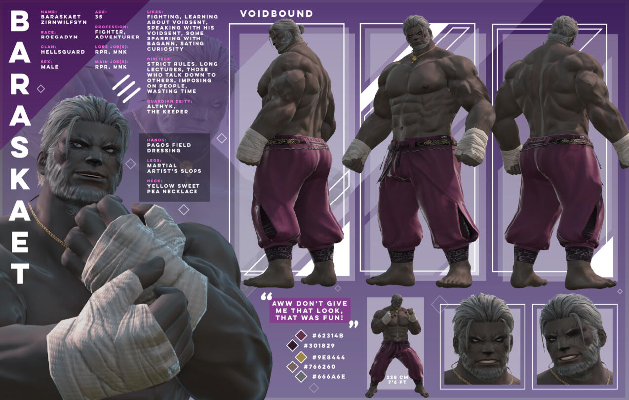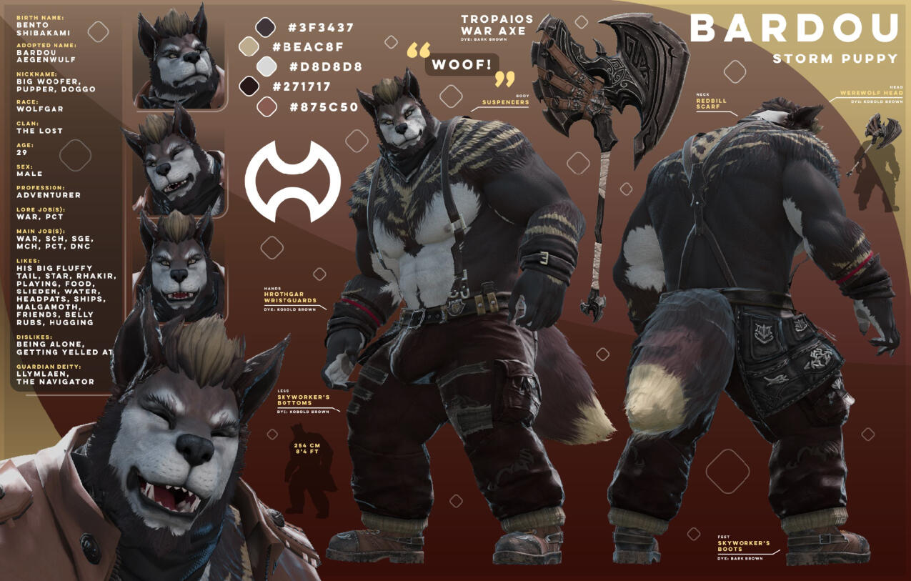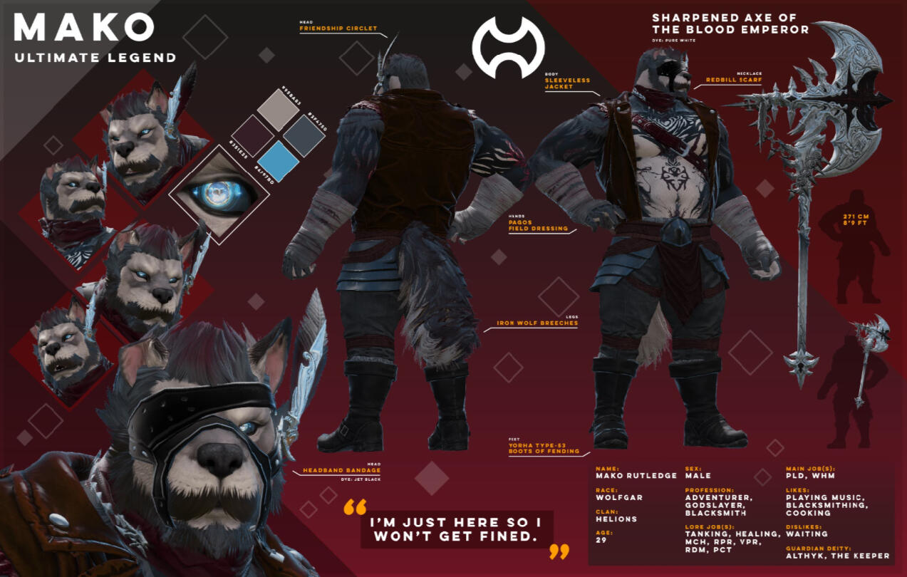 Your big, friendly, helmet-enjoyer roegadyn! I usually do my dailies and Gpose a lot with either my main (Rogahr) or one of my many alts...