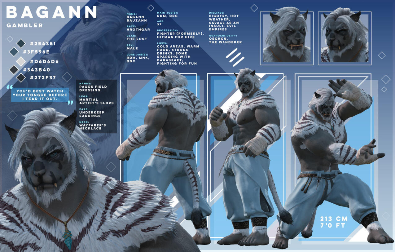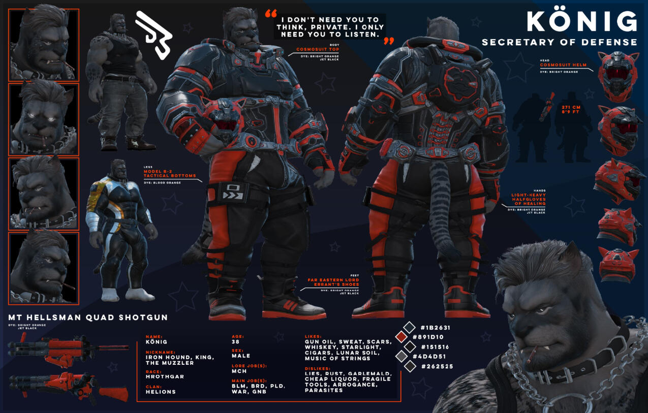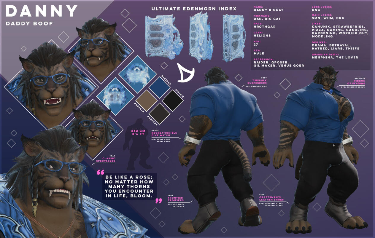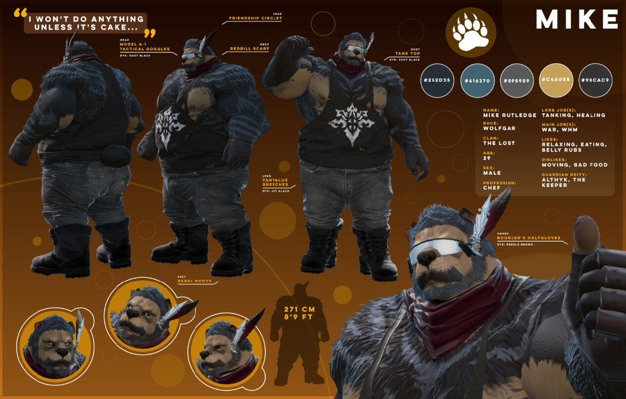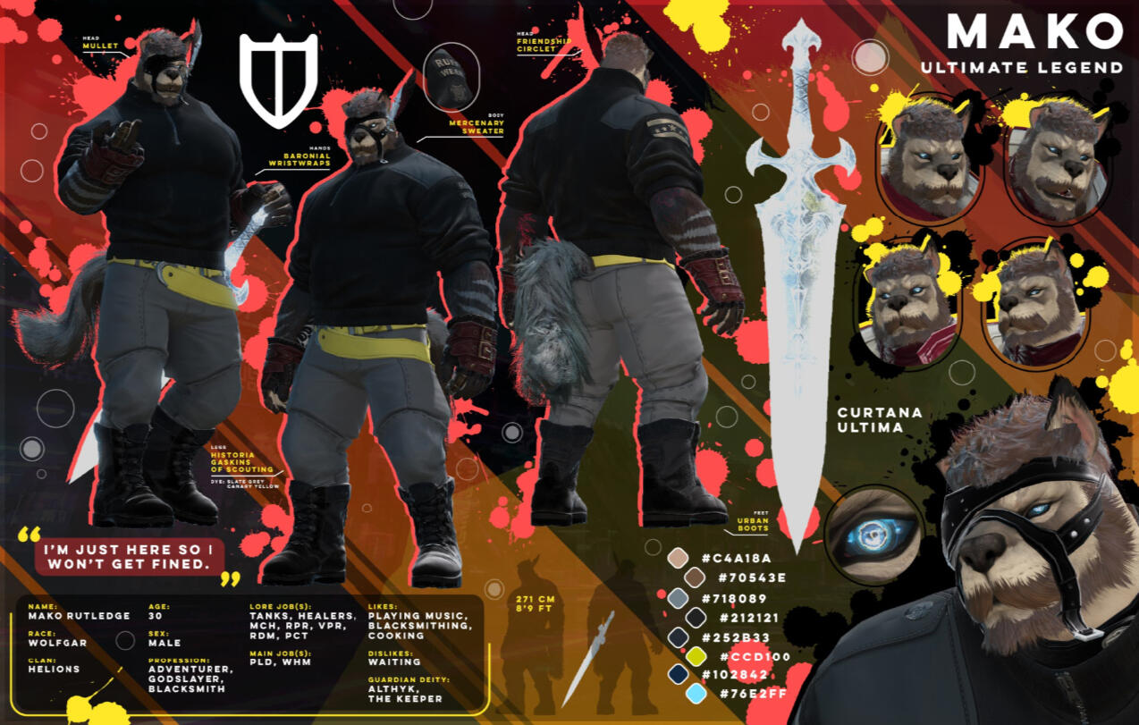 Your big, friendly, helmet-enjoyer roegadyn! I usually do my dailies and Gpose a lot with either my main (Rogahr) or one of my many alts...